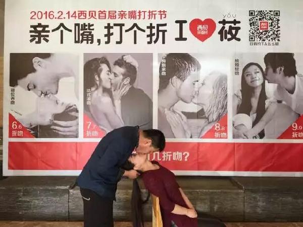 但在大家創(chuàng)意迭出的時(shí)候,西貝卻年復(fù)一年,重復(fù)著“親嘴節(jié)”的活動(dòng),連續(xù)兩屆的“親嘴節(jié)”制造了不小的轟動(dòng)效應(yīng)。“親個(gè)嘴,打個(gè)折,I?莜”的口號(hào)愈發(fā)響亮,也讓西貝的品牌理念更加深入人心。