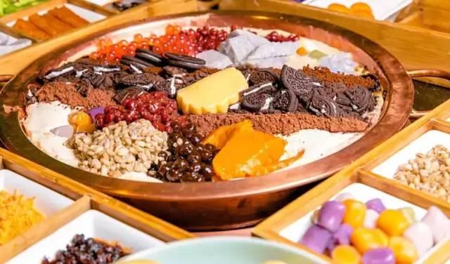 搭配的食材則除了珍珠、波霸、青稞、紫薯、奧利奧等甜點(diǎn)作料,也能涮肥牛、咸蛋黃、肉松甚至辣條等咸口食材。