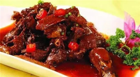傳統(tǒng)做法是將鴨子炸制后再蒸,而則用混合油煸炒后再改小火燜制90分鐘,這樣鴨肉才會(huì)軟糯入味。如果想要節(jié)省時(shí)間,可以用高壓鍋壓制。