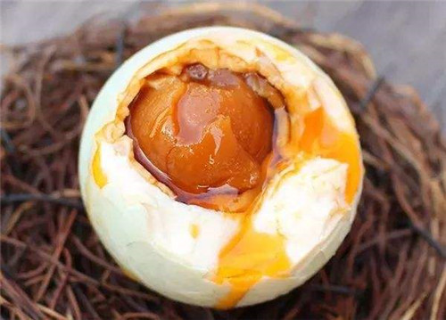 取適量的花椒、五香八角、大蒜子,生姜、精鹽,等量放于水中煮沸20分鐘,倒入瓷壇內(nèi)。然后將洗凈的雞蛋泡入,封嚴壇口,40天后即成。這種腌鴨蛋,香味濃郁,微咸可口。