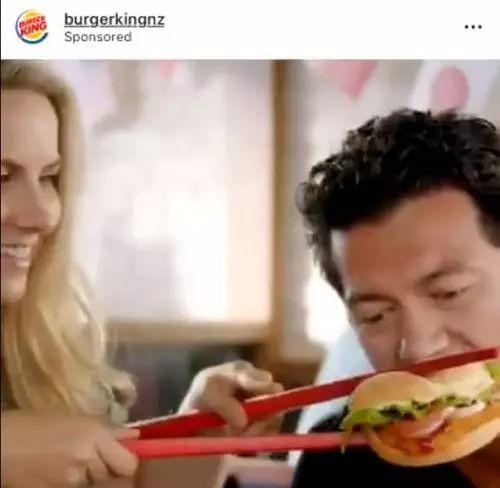 據(jù)報(bào)道,為在新西蘭推廣新品“越南甜辣雞肉堡”,漢堡王在Instagram賬號(hào)上發(fā)布一段廣告視頻:視頻中,“顧客”手握尺寸夸張的巨筷,十分吃力地把漢堡湊到嘴邊撕咬;更可笑的是,他們并非單手持筷,而是一手一支,動(dòng)作笨拙、吃相難看。