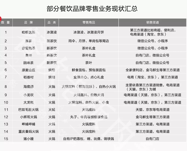 餐飲新零售還能不能做? 怎么做? 有哪些坑千萬不能踩?筆者統(tǒng)計并探訪了70家餐飲品牌的零售業(yè)務現狀,且來一看究竟。