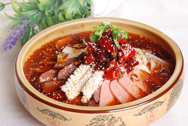 1891年重慶正式開埠后,長江上出現(xiàn)了眾多商販和纖夫。與商人不同,生活在長江沿岸的纖夫,貧窮卻需要大量補充蛋白質(zhì)。這些消費不起精肉的纖夫,只能吃一些內(nèi)臟以及不太新鮮的肉類補充所需。為了掩蓋不新鮮食材的腥臭,纖夫便大量使用辣椒等香料。于是,“麻辣燙”、“毛血旺”、“紅油火鍋”等菜式應運而生。