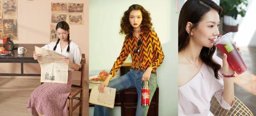再看奈雪的聯(lián)名,通過三個時代中讀報的場景,傳達了「時光流逝」的感受,表明縱然時代變遷,人民日報依然陪伴身邊。