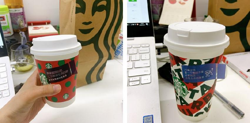 啡快的暗號(hào)讓人感到新奇有趣,星爸爸的「外賣杯」和杯子上的貼心標(biāo)語會(huì)讓人“欲罷不能”。因?yàn)槊刻斓谋硬恢貥?,每天的?biāo)語也各種“暖心”: