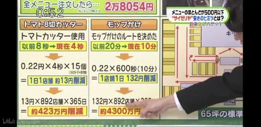 每位服務員節(jié)約4秒的話,全國門店就將節(jié)約423萬日元,節(jié)約10分鐘的話,這個數字會去到4300萬日元。