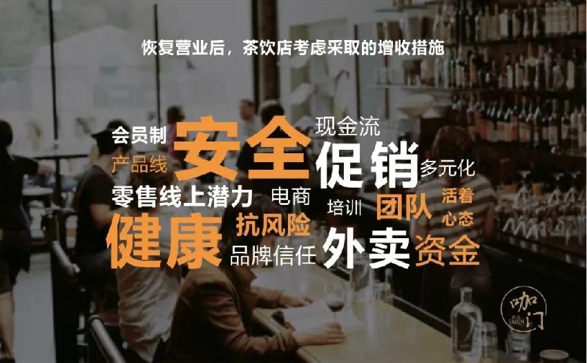 此次疫情,為茶飲業(yè)按下暫停鍵,但另一方面,也帶來(lái)很多思考。對(duì)復(fù)工后將要采取的增收手段調(diào)查:食品安全、健康營(yíng)銷、發(fā)掘線上潛力、用會(huì)員制增加消費(fèi)粘性、擴(kuò)充產(chǎn)品線、提升品牌信任度等詞,是被提到的高頻詞匯。