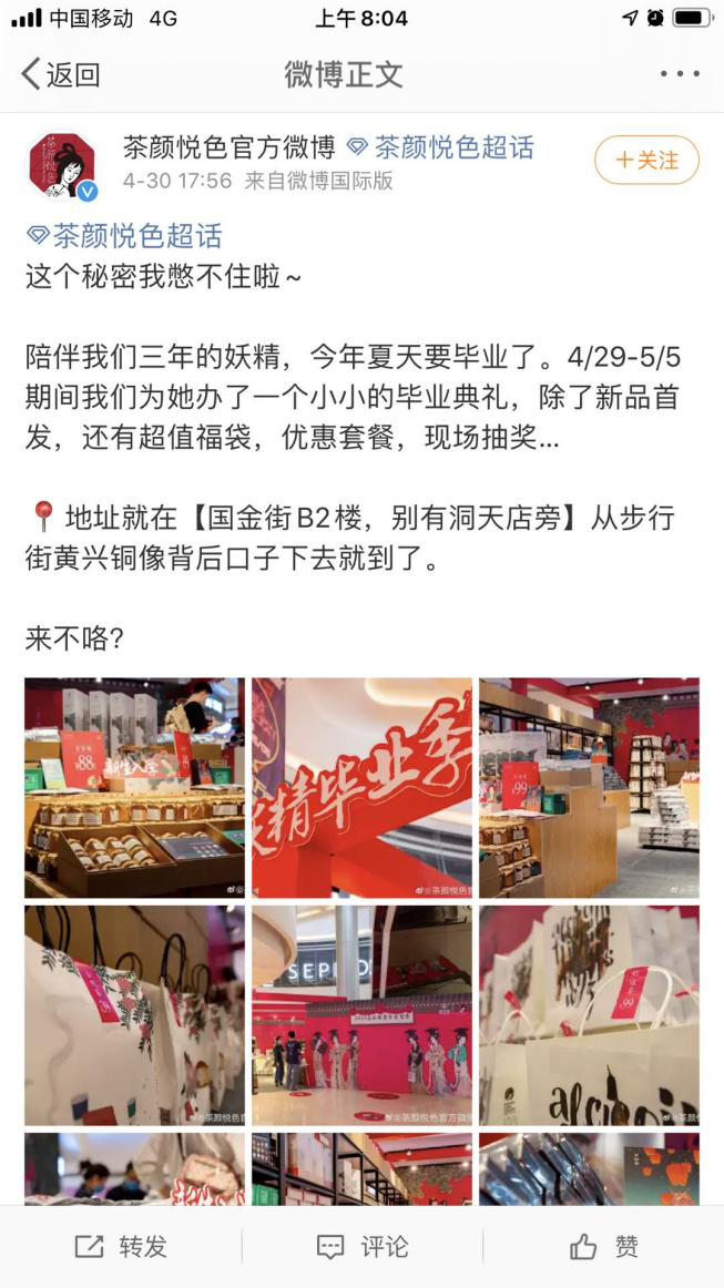 茶顏悅色創(chuàng)辦的公眾號、微博,不僅僅是單方面的輸出內(nèi)容,而且最重要的是與顧客保持互動(dòng),吸取建議,也就是基于顧客需求定位,及時(shí)與顧客溝通,再根據(jù)顧客的要求不斷更新、調(diào)整產(chǎn)品與營銷方式,保證了品牌的發(fā)展活力。
