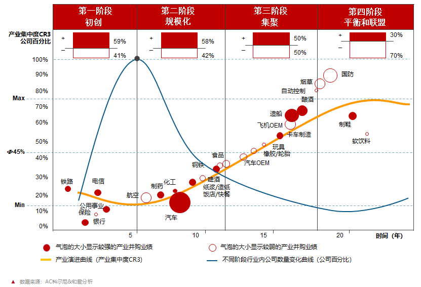 3、一個行業(yè)由產(chǎn)生開始會經(jīng)歷初創(chuàng)、規(guī)?;?、集聚、平衡和聯(lián)盟四個階段,以產(chǎn)業(yè)集中度為縱軸,產(chǎn)業(yè)動態(tài)變化作為橫軸,形成一條產(chǎn)業(yè)演進曲線,餐桌鹵亦然。